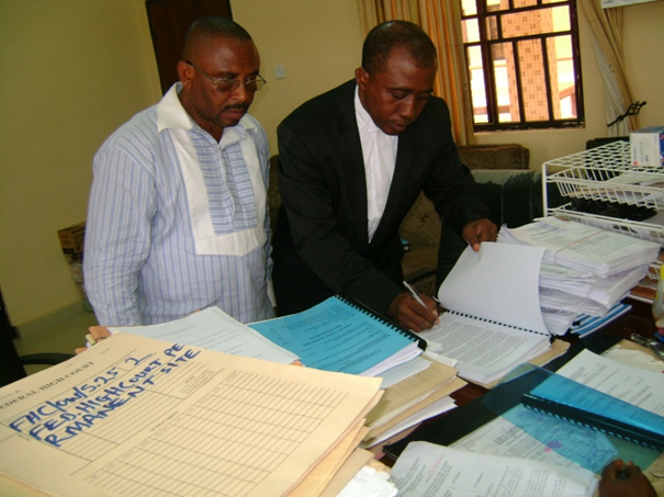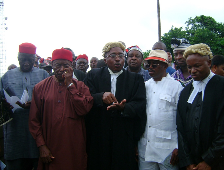 Barr Emeka Emekesiri, founder and vision bearer of IPOB, filing the case between Biafra and Nigeria in Suit No FHC/OW/CS/102/2012. Standing by his side was Engr Innocent Amadi.